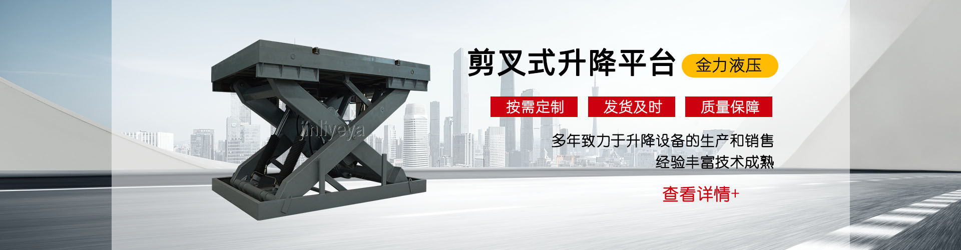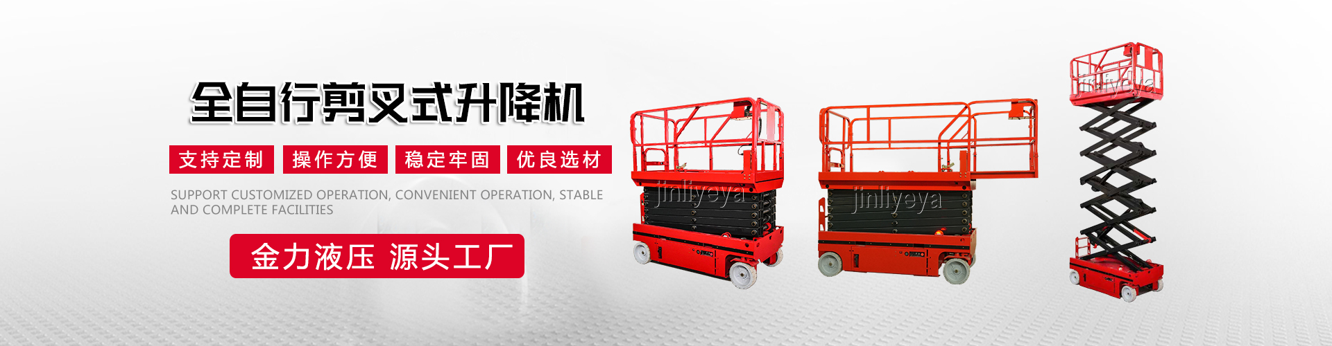 济南金力液压机械有限公司是质量、信誉双保单位,重合同守信用单位。工厂始建于1958年,于2004年改制,占地面积12万平方米,建筑面积8万平方米,本公司生产设备精良,工艺,检测手段齐全,技术力量丰富,是国内液压升降平台生产厂家。 本公司已通过了ISO国际质量管理体系认证,获得国家安全生产标准化证书。液压升降平台生产设备精良,检测工具齐全,具有较强生产能力,不断研发新产品,坚持诚信为本 、信誉至上的信念和优zhi的服务标准赢得了...