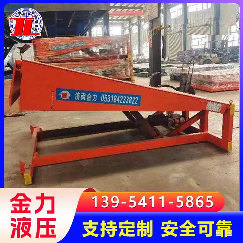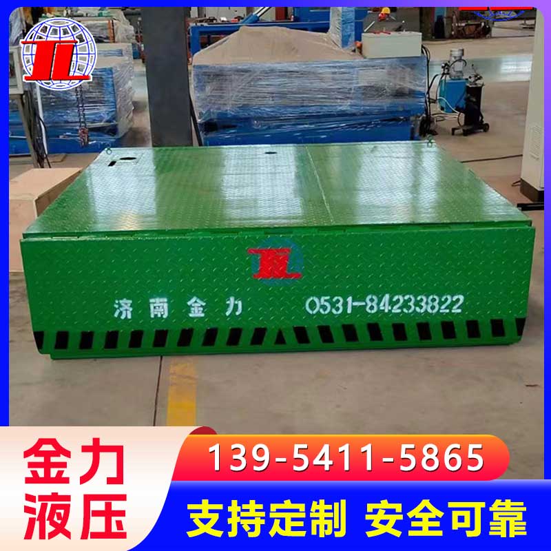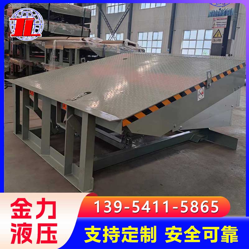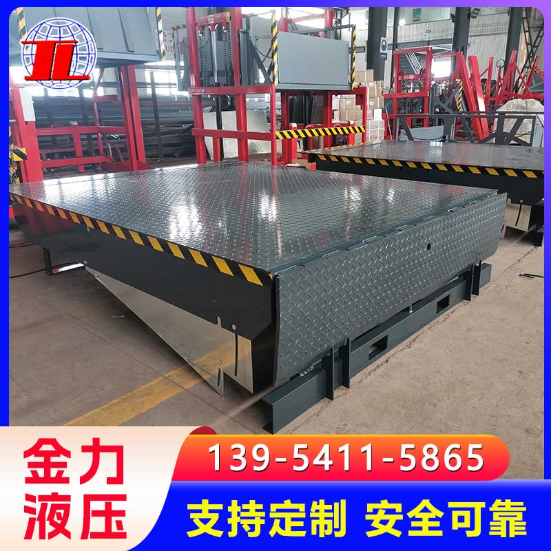 主体结构:通常由高强度钢材制成,主要包括一个可升降的平台和一个与货车车厢搭接的过桥。平台部分用于承载叉车及货物,而过桥则是连接平台与车厢的通道。